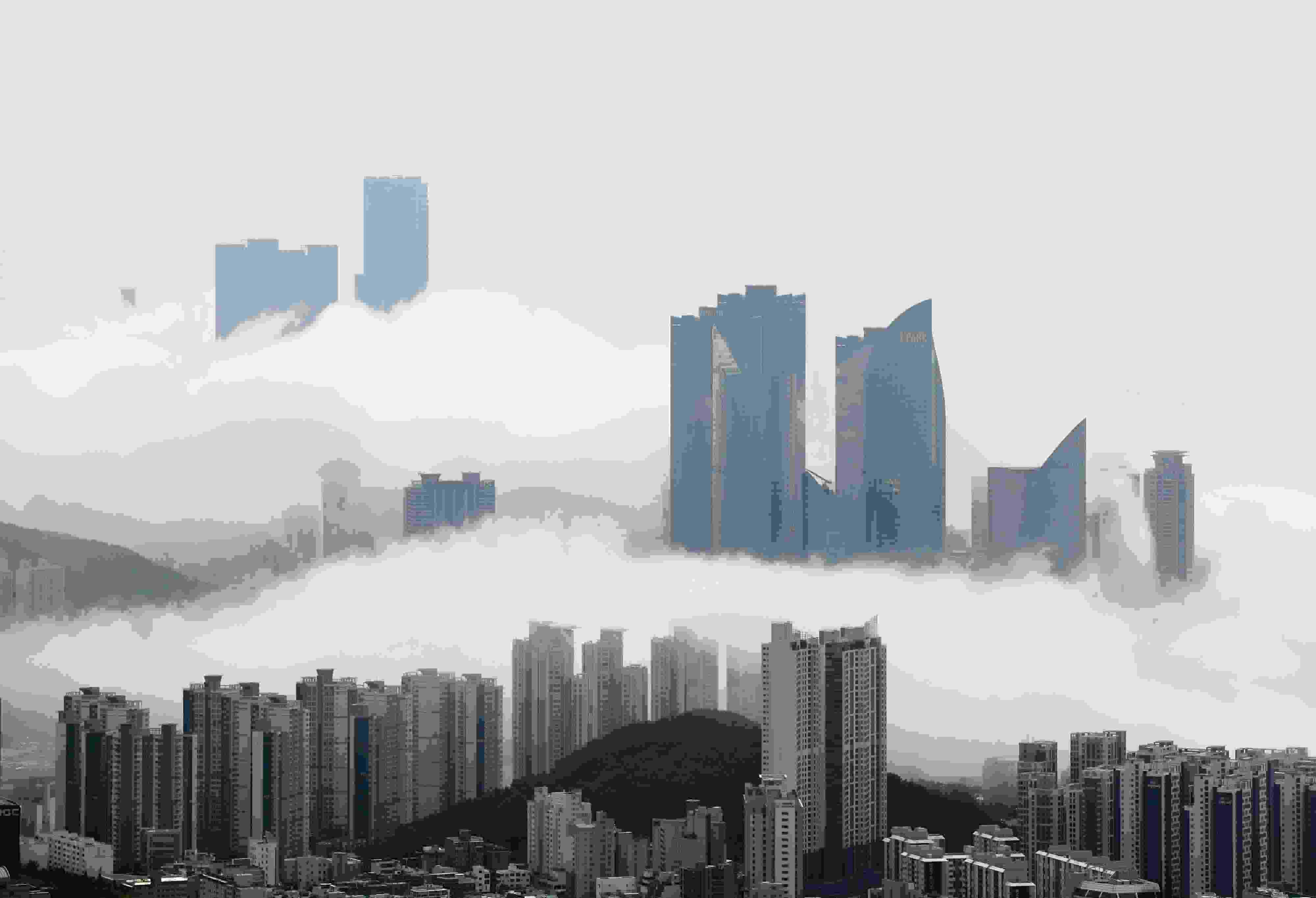當(dāng)?shù)貢r(shí)間2023年6月12日,韓國(guó)釜山,廣安大橋一帶海霧彌漫,蔚為壯觀。 視覺(jué)中國(guó)
