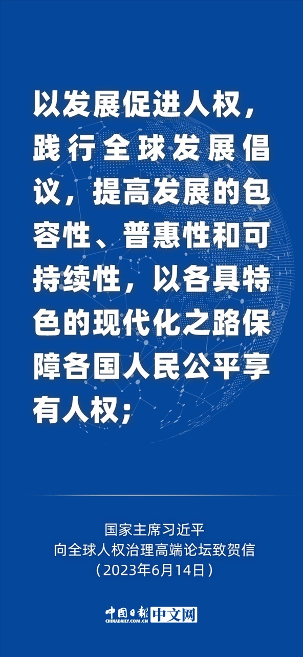 6月14日,國(guó)家主席習(xí)近平向全球人權(quán)治理高端論壇致賀信。習(xí)近平指出,當(dāng)前,人類又一次站在歷史的十字路口,全球人權(quán)治理面臨嚴(yán)峻挑戰(zhàn)。我們主張: