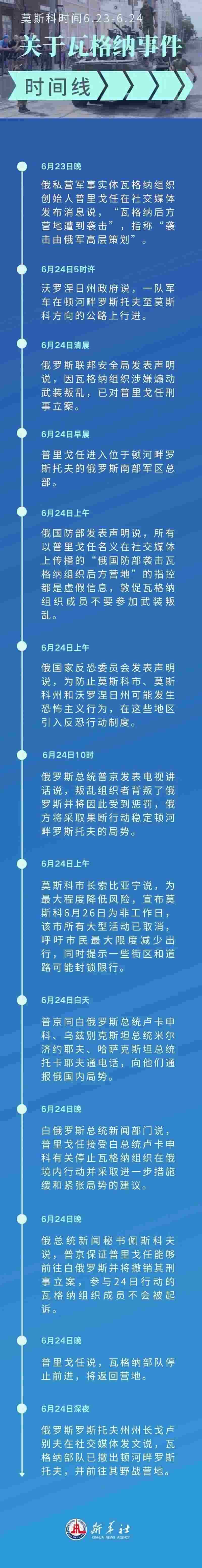 24日上午,俄總統(tǒng)普京向白俄羅斯總統(tǒng)盧卡申科通報(bào)俄國內(nèi)局勢(shì),兩國元首同意采取聯(lián)合行動(dòng)。盧卡申科隨后與瓦格納組織創(chuàng)始人普里戈任舉行電話會(huì)談,會(huì)談最終達(dá)成共識(shí)并形成解決方案。