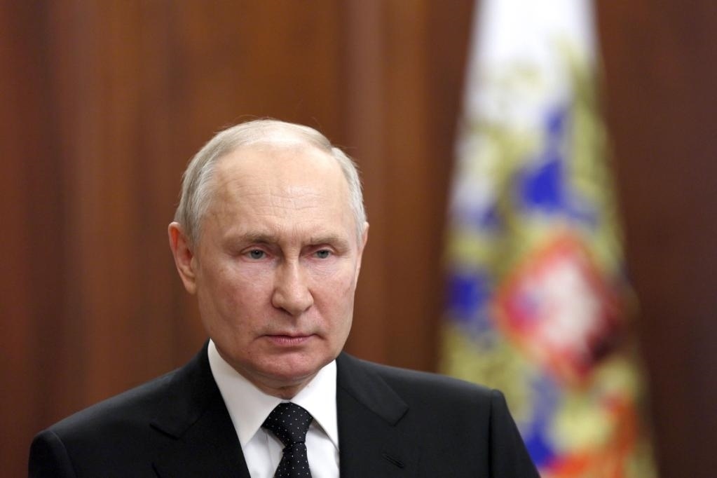 6月24日,俄羅斯總統(tǒng)普京發(fā)表電視講話。新華社/塔斯社