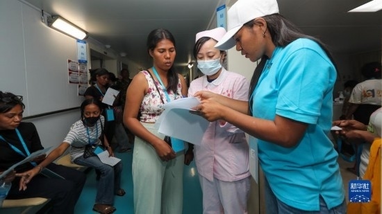 中國海軍“和平方舟”號醫(yī)院船訪問東帝汶并開展醫(yī)療服務(wù)期間,醫(yī)院船醫(yī)護人員為當(dāng)?shù)孛癖娞峁┽t(yī)療服務(wù)(9月8日攝)。新華社發(fā)(黎宇 攝)