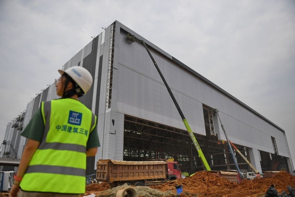 2023年8月15日,在位于四川省成都市雙流區(qū)的空中客車(成都)飛機(jī)全生命周期服務(wù)有限公司項目建設(shè)現(xiàn)場,工人在作業(yè)。新華社發(fā)(李向雨 攝)