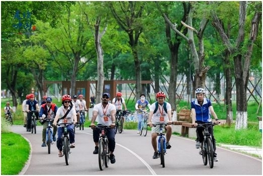 直播記錄下了外媒記者們騎行打卡世界規(guī)模最大的綠道系統(tǒng)——天府綠道核心“一軸”錦江綠道的全程:從鳥語花香的桂溪生態(tài)公園出發(fā),在綠樹掩映的婚姻登記所簽訂“城市婚書”,在亞洲最大單體建筑新世紀環(huán)球中心南側(cè)濕地學習四川話,在錦城湖4號湖畔撞線……