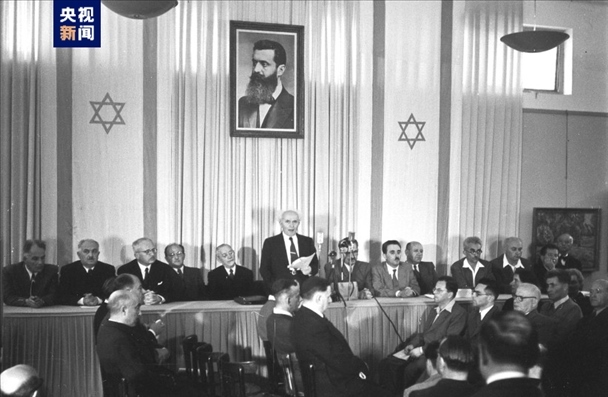 △1948年5月,以色列首任總理本·古里安宣讀以色列《獨立宣言》。