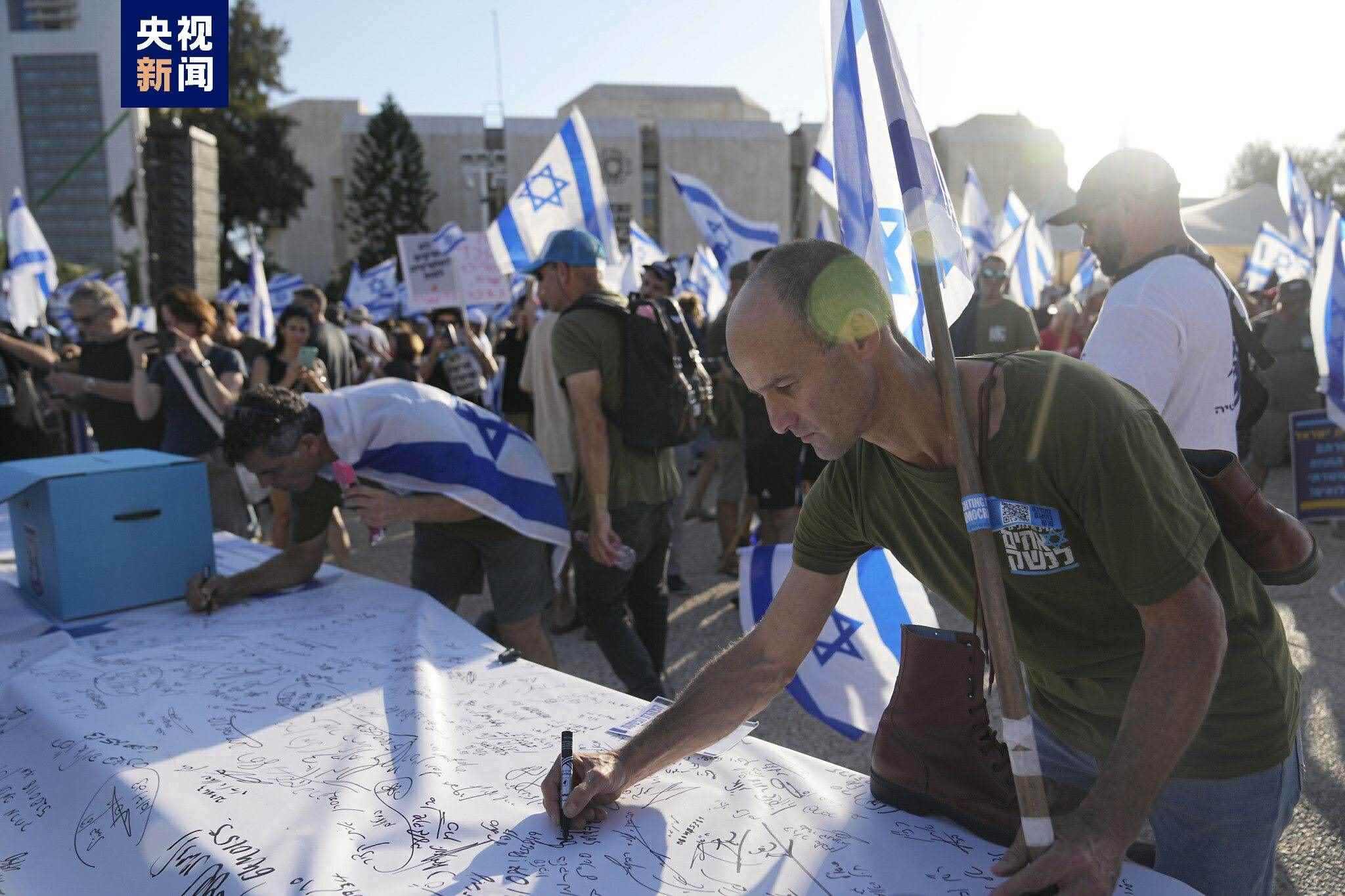 △今年7月,以色列預(yù)備役士兵簽署聲明拒絕參與訓練,抗議司法改革。
