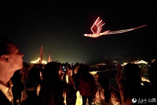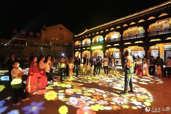 圖為郭峪古城燈光秀表演。人民網 盧鵬宇攝