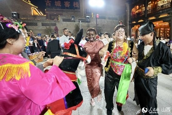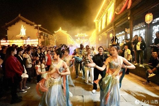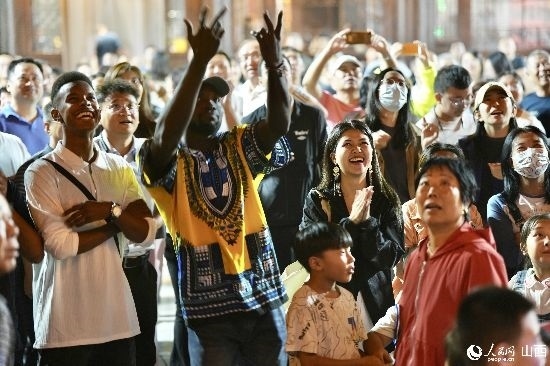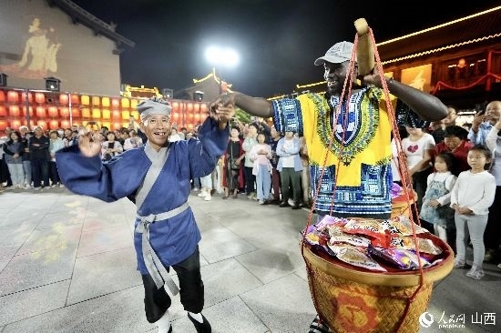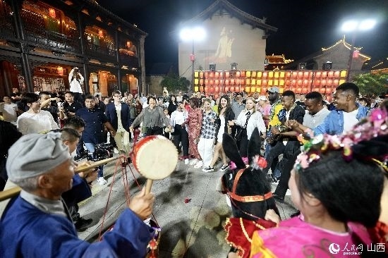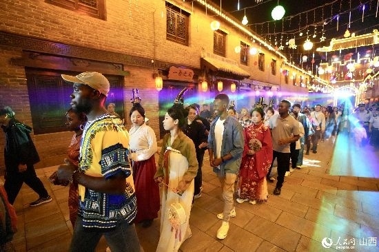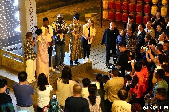 眼花繚亂的民俗表演,沉浸式的古城巡游,絢爛的城樓燈光秀,陶醉的狂歡……9月15日夜晚,在即將結束山西之行的前夜,2023“漢字緣”國際故事大會決賽的選手們夜游山西省晉城市陽城縣郭峪古城,于燈火闌珊處感受古城中的人間煙火。(人民網 盧鵬宇攝)