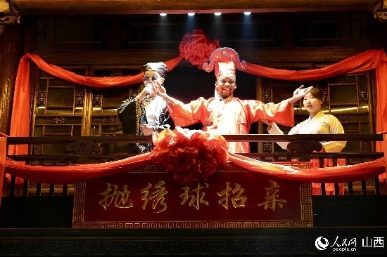 圖為拋繡球招親。人民網 盧鵬宇攝