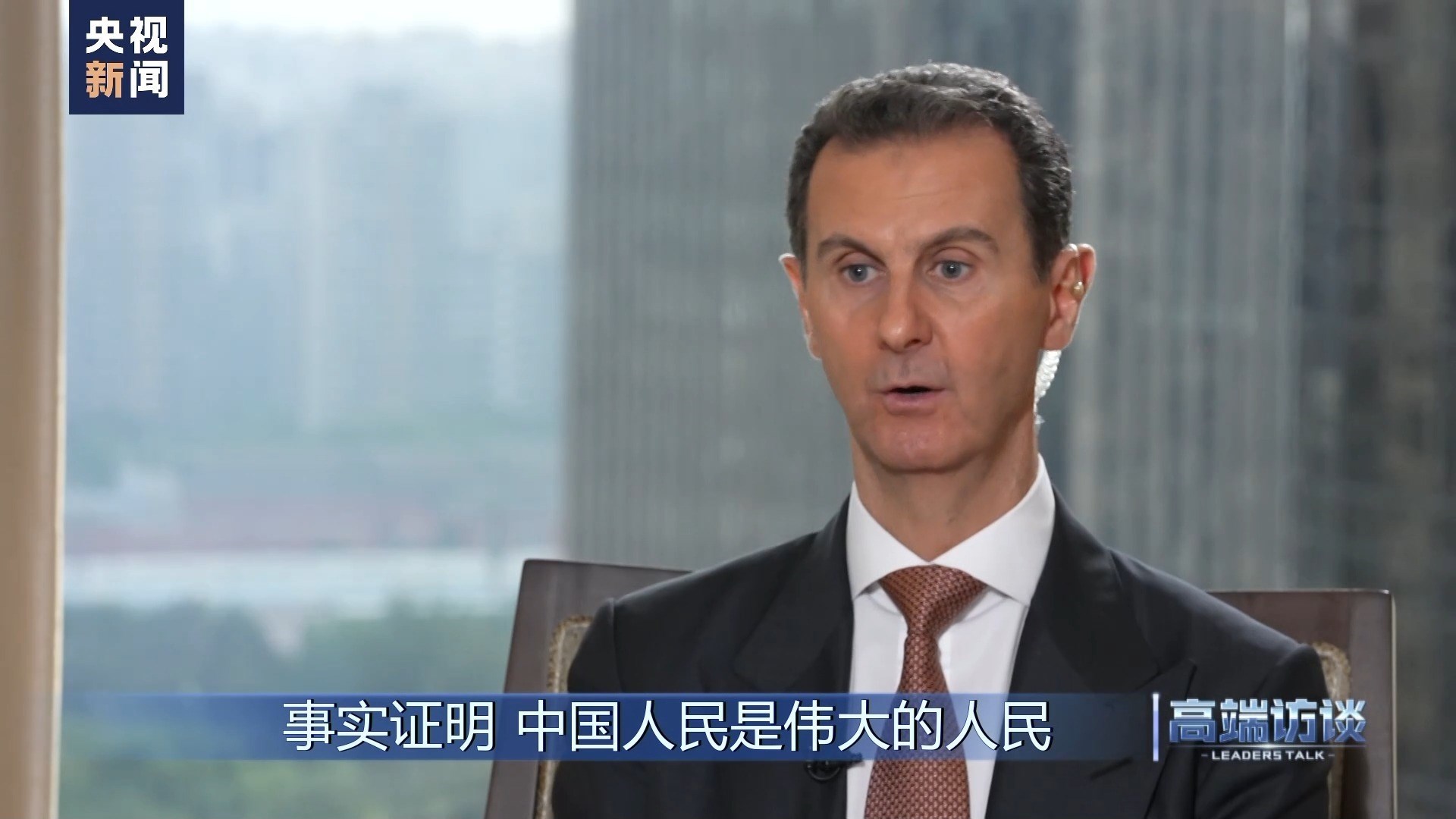 巴沙爾:感謝你給我機(jī)會(huì),通過你們頻道、你們節(jié)目向中國(guó)人民說這些話。我想向中國(guó)人民表示祝賀,祝賀你們過去幾十年取得的成就。事實(shí)證明,中國(guó)人民是偉大的人民。我不是嘴上說說,而是事實(shí)的確如此。我們祝愿中國(guó)實(shí)現(xiàn)國(guó)家愿景,在國(guó)際上,中國(guó)的愿景也是當(dāng)今世界大多數(shù)國(guó)家的愿景。謝謝你的采訪!
