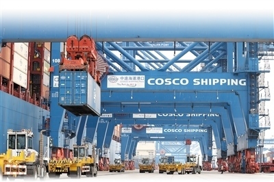 中遠海運港口阿聯(lián)酋阿布扎比碼頭采用岸橋預(yù)留自動化和堆場自動化作業(yè)模式,可作業(yè)超2萬標準箱大型船舶,年設(shè)計能力250萬標準箱。本報中東中心分社 納達爾·達烏德攝