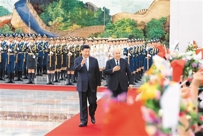 習(xí)近平指出,今年是中阿建交65周年。65年前,反對(duì)帝國主義和殖民主義、爭(zhēng)取民族獨(dú)立解放的共同事業(yè)使我們兩國走到一起。65年來,中國和阿爾及利亞始終患難與共、守望相助,相互理解、相互支持,是追求共同發(fā)展和民族振興道路上的真誠朋友、天然伙伴。中方正在以中國式現(xiàn)代化全面推進(jìn)中華民族偉大復(fù)興,阿方正在著力推進(jìn)建設(shè)“新阿爾及利亞”。中方愿同阿方一道努力,發(fā)揚(yáng)光大傳統(tǒng)友誼,推動(dòng)中阿全面戰(zhàn)略伙伴關(guān)系取得更大發(fā)展。