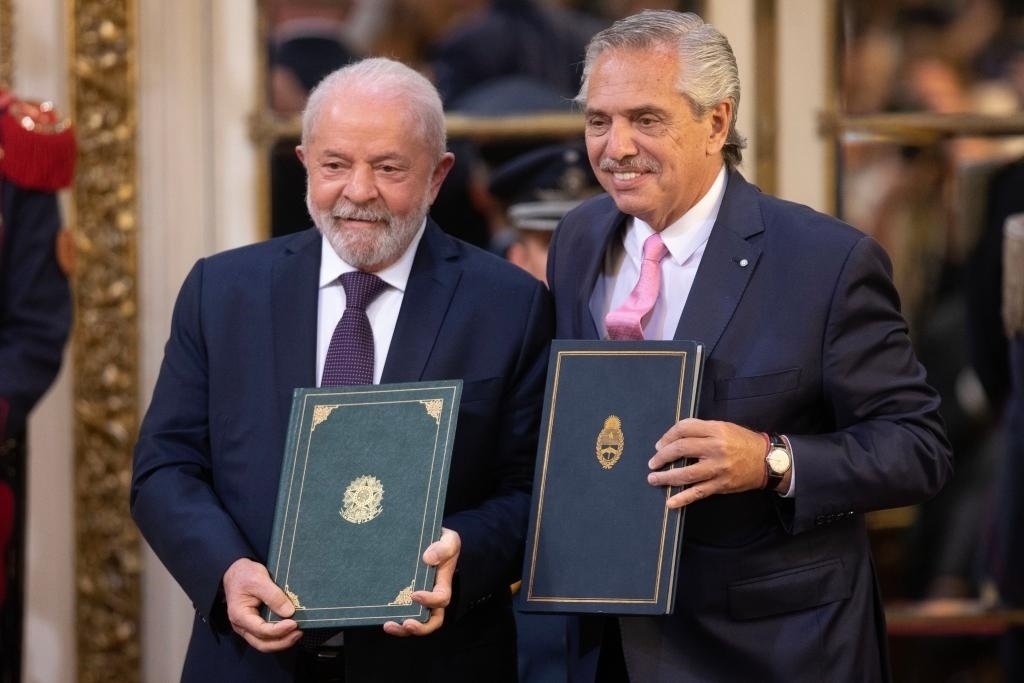 今年1月23日,在阿根廷布宜諾斯艾利斯,阿根廷總統(tǒng)費(fèi)爾南德斯(右)和巴西總統(tǒng)盧拉共同出席新聞發(fā)布會。新華社發(fā)(馬丁·薩巴拉攝)