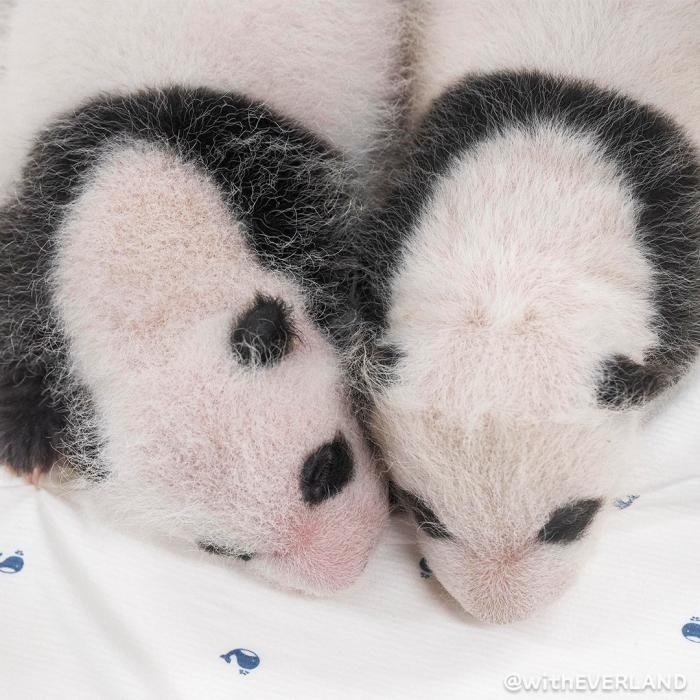 據(jù)報(bào)道,從公開(kāi)的照片來(lái)看,這對(duì)大熊貓寶寶已開(kāi)始慢慢長(zhǎng)胖,眼睛、耳朵、肩膀、胳膊、腿周圍,顯現(xiàn)出獨(dú)特的黑色斑紋。