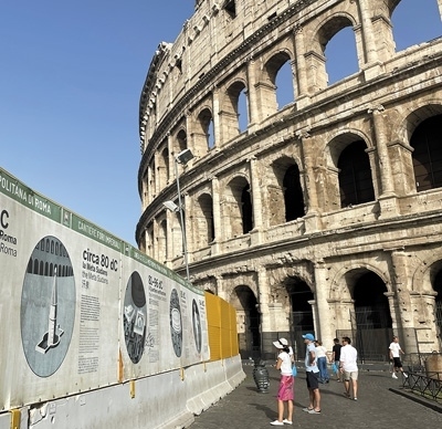在意大利羅馬熱門景點(diǎn)斗獸場(chǎng),游客正在閱讀帶有中文解說(shuō)的標(biāo)識(shí)牌。本報(bào)記者 謝亞宏攝