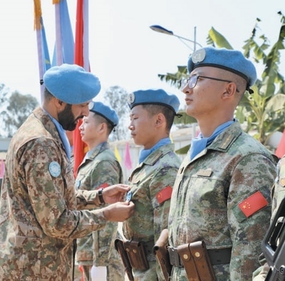 今年是中國赴剛果(金)維和任務(wù)20周年。日前,中國第二十六批赴剛果(金)維和部隊全體官兵被授予聯(lián)合國“和平勛章”,這是聯(lián)合國表彰維和人員的最高榮譽。