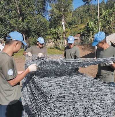 自去年9月部署到任務(wù)區(qū)以來,第二十六批維和工兵分隊已完成32項工程任務(wù)、26項工程勘察,累計修筑道路52公里、搭建板房50間、構(gòu)筑圍墻2100米。今年5月,南基伍省卡萊亥地區(qū)遭受強降雨和洪水災(zāi)害,造成400多人死亡,上千座民居被沖毀。關(guān)鍵運輸線路上的魯濟拉橋被洪水沖垮,切斷了人道主義援助物資的運輸線,給當(dāng)?shù)孛癖娊煌ǔ鲂泻涂购榫葹?zāi)造成嚴(yán)重影響。工兵分隊接到任務(wù)后,第一時間奔赴災(zāi)區(qū)一線,在河邊安營扎寨,執(zhí)行工程救援。7月,嶄新的魯濟拉橋已經(jīng)順利完工。