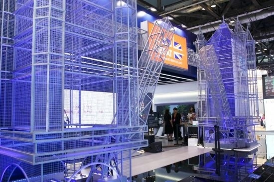 這是9月3日在國(guó)家會(huì)議中心綜合展區(qū)拍攝的英國(guó)展館。新華社記者 孫瑋彤 攝
