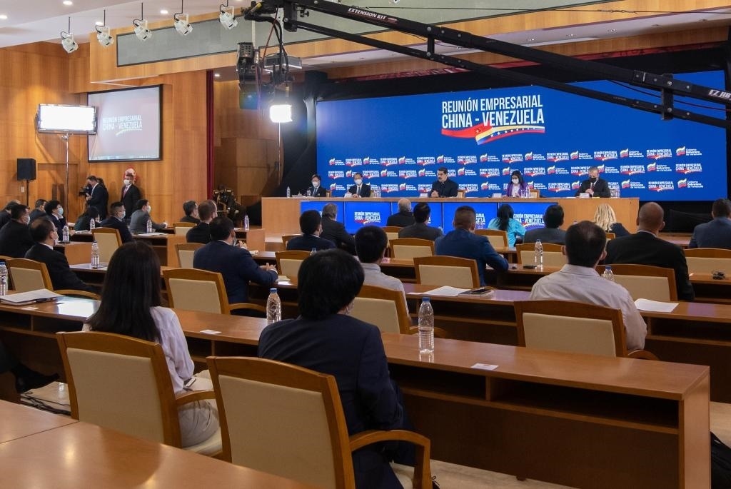 2020年11月6日,委內(nèi)瑞拉總統(tǒng)馬杜羅率內(nèi)閣主要成員與中資企業(yè)代表舉行座談會,希望進一步推進兩國務(wù)實合作,造福兩國人民。新華社發(fā)(薩爾戈多攝)