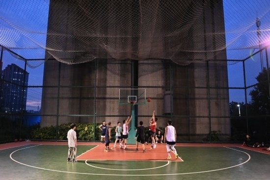 2022年9月20日,杭州市民在位于高鐵橋下的錢(qián)江世紀(jì)城體育公園打籃球。新華社記者 黃宗治 攝