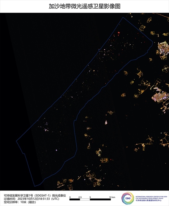 可持續(xù)發(fā)展科學(xué)衛(wèi)星1號(hào)當(dāng)?shù)貢r(shí)間10月12日晚10時(shí)左右獲取的最新衛(wèi)星影像也顯示,在徹底斷電之后,整個(gè)加沙地帶的夜晚幾乎完全陷入了黑暗,只有零星的燈火,這也意味著整個(gè)加沙地帶陷入了癱瘓,當(dāng)?shù)孛癖姷幕旧钜褵o(wú)法得到保障。