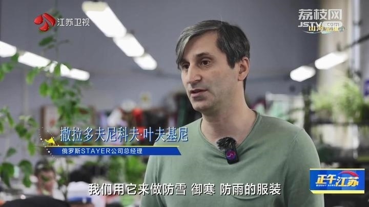 俄羅斯STAYER公司總經(jīng)理撒拉多夫尼科夫·葉夫基尼說:“這都是剛從中國運過來的布料,它們具有防水性,透氣性,我們用它來做防雪、御寒、防雨的服裝。所有人都贊成中國的布料越來越好,近三年的計劃是加強與合作伙伴的聯(lián)系,擴大布料的購買量,期待有好的發(fā)展。”