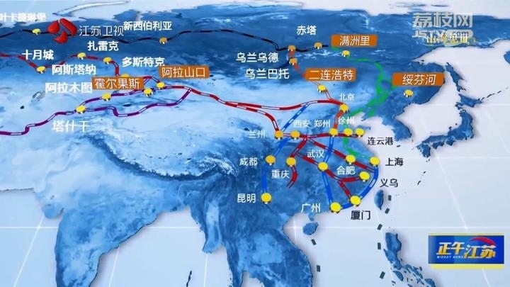 1992年,江蘇連云港開通最早發(fā)往中亞的班列;2013年,蘇州、鄭州、重慶、成都首批開通中亞班列;2016年,統(tǒng)一品牌:中歐班列。截至2023年9月底,中歐班列累計開行超7.8萬列,聯(lián)通中國境內(nèi)112個城市,通達歐洲25個國家的217個城市。