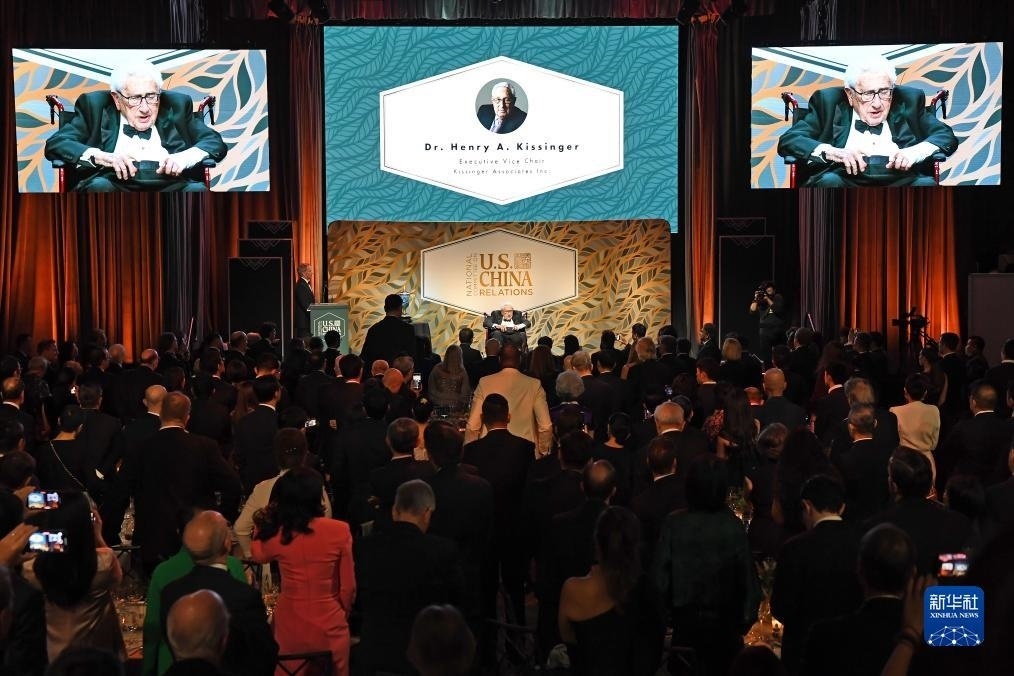 新華社紐約10月25日電(記者施春 楊士龍)美中關(guān)系全國委員會24日在紐約舉行年度頒獎晚宴,兩國領(lǐng)導(dǎo)人向晚宴致賀信。晚宴向美國前國務(wù)卿基辛格頒獎,表彰他為中美關(guān)系發(fā)展所作的卓越貢獻。