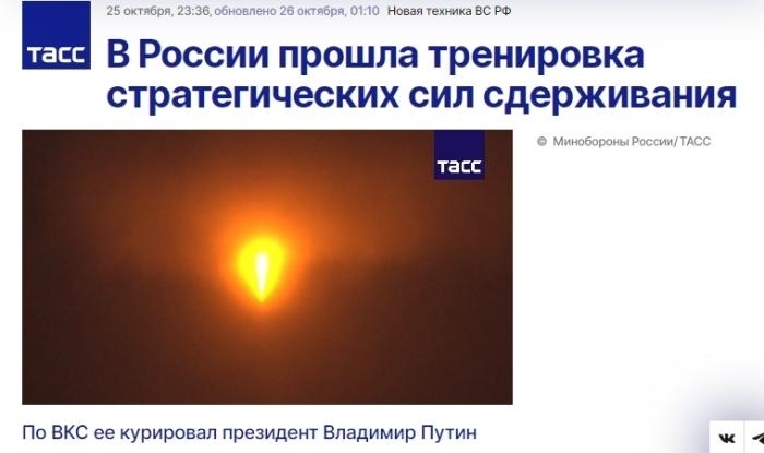 中新網10月27日電 據塔斯社報道,當地時間25日,在俄軍最高統帥、俄總統普京的指揮下,俄羅斯武裝部隊進行了戰(zhàn)略核威懾力量演習。