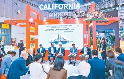 11月6日,加州創(chuàng)新合作論壇在第六屆中國(guó)國(guó)際進(jìn)口博覽會(huì)期間舉行。圖為中美嘉賓在論壇上交流。王善華攝