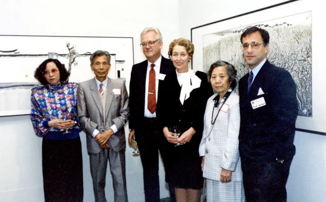 高居翰(左三)與吳冠中(左二)在畫展上合影。高居翰之女莎拉提供