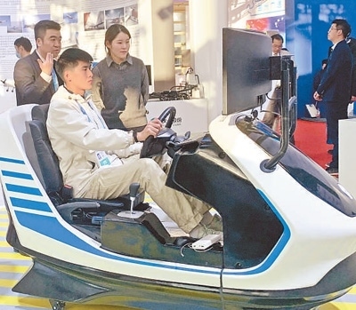 工作人員在展示遠程駕駛平臺。本報記者 施 芳攝