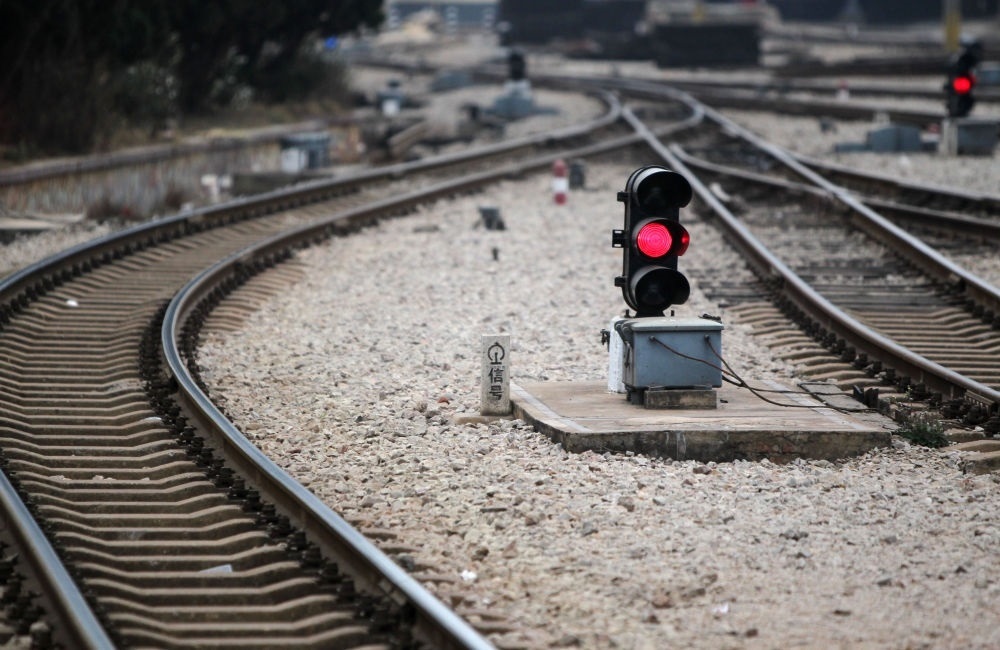這是2012年3月2日在云南昆明王家營(yíng)車(chē)站拍攝的滇越鐵路米軌軌道。