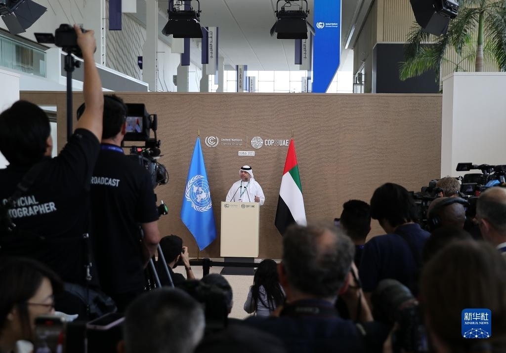 12月12日,在阿聯(lián)酋迪拜,COP28總干事馬吉德·蘇韋迪在新聞發(fā)布會(huì)上回答記者提問。新華社記者 王東震 攝