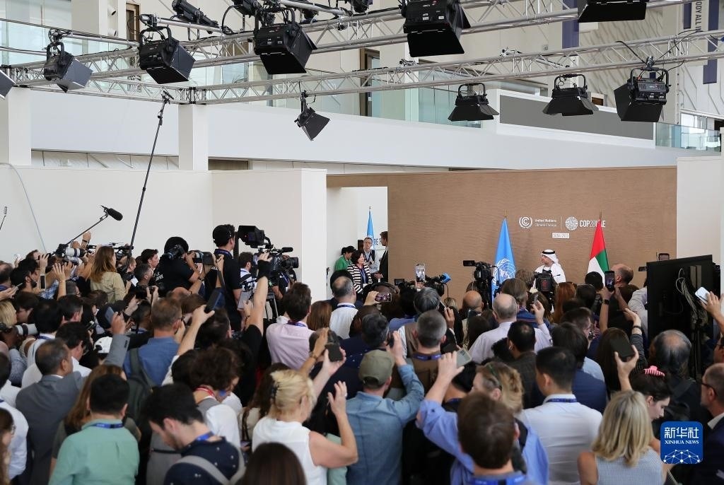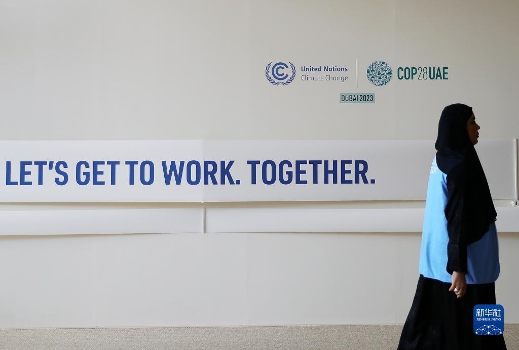 12月12日,在阿聯(lián)酋迪拜,參會(huì)人員在聯(lián)合國氣候變化迪拜大會(huì)會(huì)場內(nèi)工作。新華社記者 王東震 攝