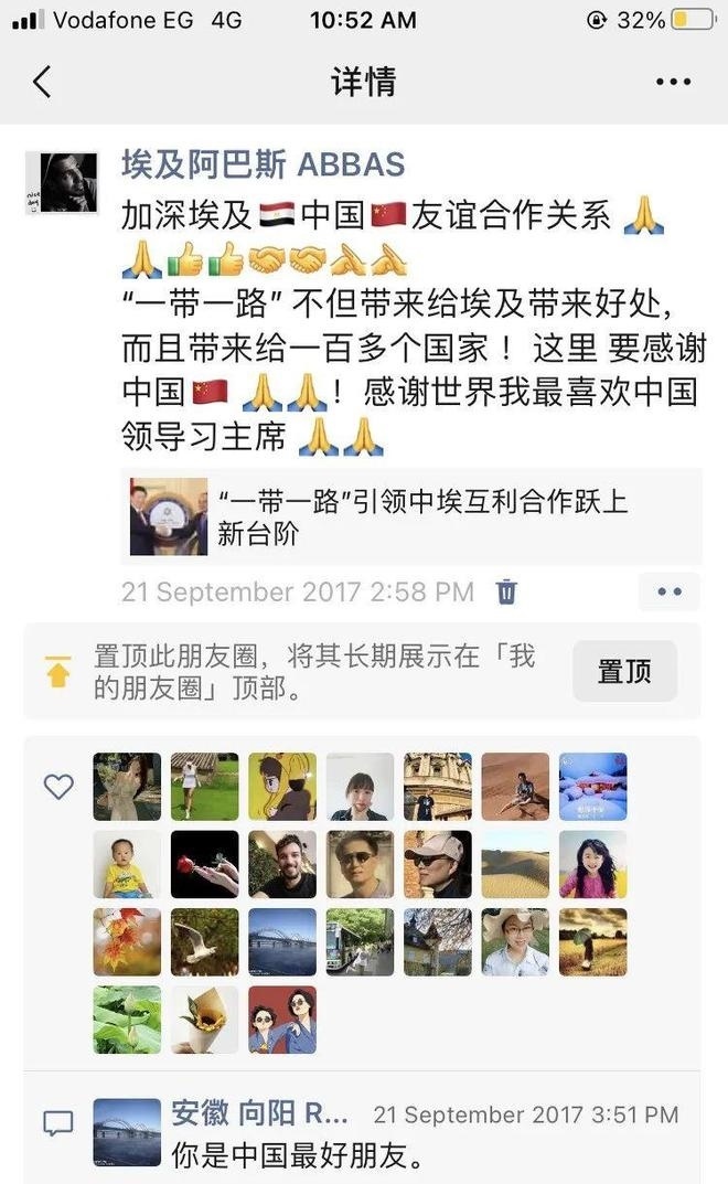 “你就是像一棵樹,根很穩(wěn)定,樹葉在天上?!边@是阿巴斯微信朋友圈里的一句話,也是他生活和工作的寫照。那深入泥土的遒勁的“根”,是他對中文和中國文化的不斷深入學習,是不斷發(fā)展的中埃友誼,是不斷走深走實的共建“一帶一路”倡議;那姿態(tài)昂揚、伸向天空的輕盈的“葉”,是他由“小我”走向“大我”穩(wěn)步實現(xiàn)的夢想,是他對更美好明天的熱切期待。