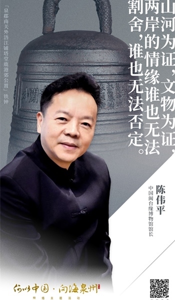1月28日晚,由中央網(wǎng)信辦、國(guó)家文物局、人民日?qǐng)?bào)社、福建省委網(wǎng)信委指導(dǎo),中央網(wǎng)信辦網(wǎng)絡(luò)傳播局、國(guó)家文物局相關(guān)司局、福建省委網(wǎng)信辦、福建省文物局以及人民網(wǎng)等部門聯(lián)合主辦的“何以中國(guó)·向海泉州”網(wǎng)絡(luò)主題活動(dòng)在泉州舉行?;顒?dòng)現(xiàn)場(chǎng),作為講述嘉賓之一,中國(guó)閩臺(tái)緣博物館館長(zhǎng)陳偉平分享了自己見(jiàn)證的閩臺(tái)緣、兩岸情。