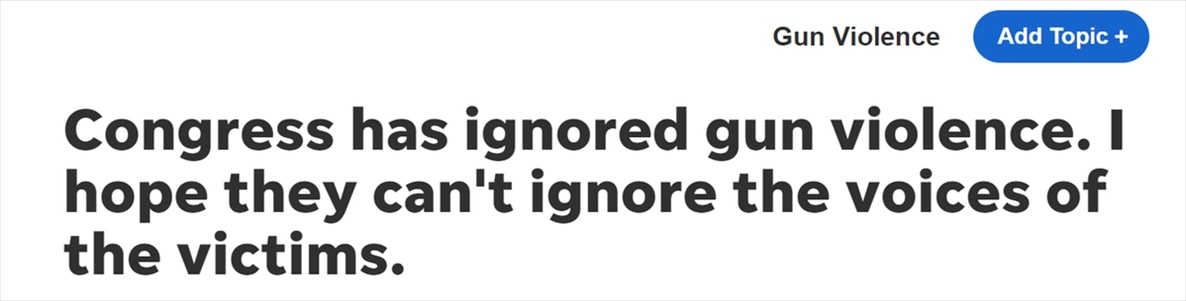 更為不幸的是,美國國會始終未能保護民眾免于遭受這種恐怖經歷,他們對此選擇無視,無視美國的槍支暴力頑疾。