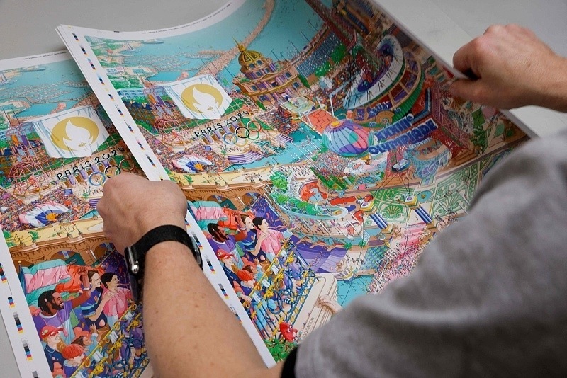 作為以色彩運用見長的藝術家,加托尼幻想出了一個多元且繁華的微觀世界,其中既包括巴黎以及法國的標志性元素,也有本屆奧運會和殘奧會的所有運動項目,同時還將巴黎奧運會的一些創(chuàng)新特點予以展示。用他自己的話來說——這是一幅基于現實的超現實主義作品。