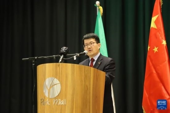 3月5日,在阿爾及利亞塞提夫,中國(guó)駐阿爾及利亞大使李健在論壇現(xiàn)場(chǎng)致辭。新華社記者 吳天雨 攝