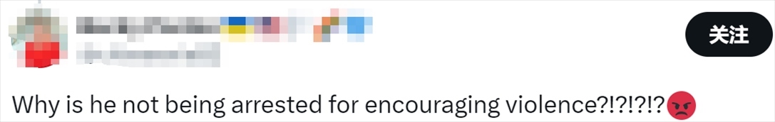 有人質問:“為什么他(特朗普)不因鼓動暴力而被逮捕??????????”