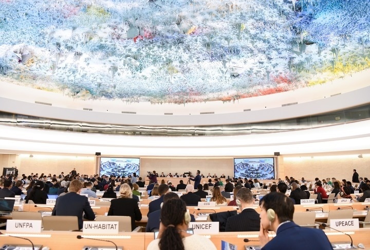 ?這是1月23日在瑞士日內(nèi)瓦拍攝的聯(lián)合國人權(quán)理事會(huì)第四輪國別人權(quán)審議現(xiàn)場。新華社記者連漪攝