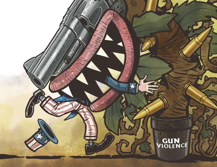 過于頻繁的各類槍支暴力事件已經(jīng)將美國(guó)社會(huì)吞沒。(作者:中國(guó)日?qǐng)?bào) 蔡艨)