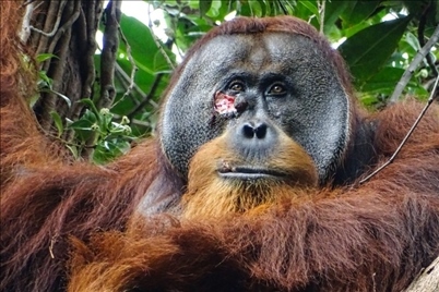 《衛(wèi)報》稱,根據(jù)報告,研究小組在追蹤一只被命名為“拉庫斯”的雄性蘇門答臘猩猩時,發(fā)現(xiàn)它的面部有一道新傷,這可能是與另一只雄性猩猩爭斗的結(jié)果。3天后,研究人員看到 拉庫斯正在咀嚼一種藤本攀援植物的莖葉。報告寫道,“在拉庫斯開始采食藤本植物13分鐘后,它開始咀嚼葉子,但沒有吞咽,而是用手指將口中的植物汁液直接涂抹在面部傷口上。