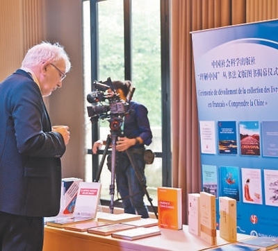 5月3日,中國社會科學(xué)出版社“理解中國”叢書法文版圖書揭幕儀式在法國巴黎舉行。圖為現(xiàn)場嘉賓在展位前駐足了解相關(guān)圖書。本報記者 楊 一攝