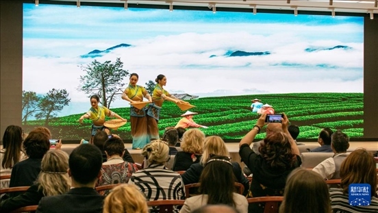 21日,中國駐美國大使館與湖北省文化和旅游廳、華盛頓美國華人博物館合作舉辦2024年度“茶和天下·雅集”活動。湖北省代表團與美國當(dāng)?shù)夭杷噹熀献鳎故玖硕魇┯衤?、長盛川青磚茶和涇渭茯茶等多種茶葉的制作技藝,以及具代表性的茶葉產(chǎn)品、茶器和制茶工具,并現(xiàn)場表演茶藝。嘉賓們紛紛表示,活動讓他們充分領(lǐng)略到了中國茶文化的親和力和凝聚力。