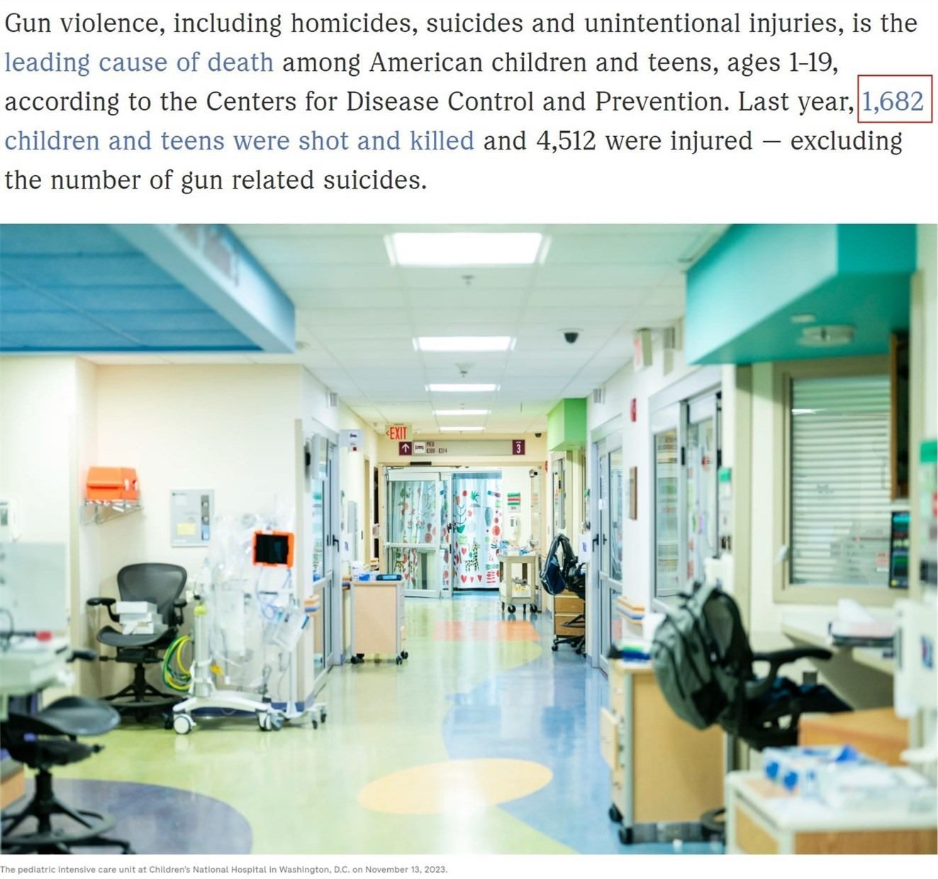 美國疾控中心的數(shù)據(jù)顯示,2023年全年,美國兒童和青少年中共有至少1682人死于槍擊,另有4512人受傷。這還不包括與槍支相關的自殺人數(shù)。