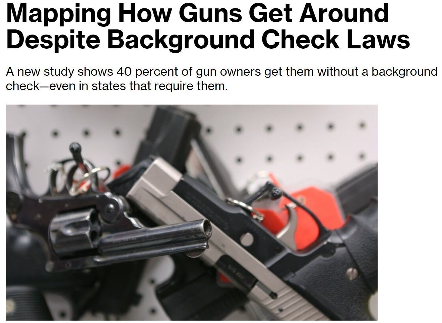 △彭博社報道:據(jù)統(tǒng)計,美國至少有40%的購槍者無需通過背景審查。
