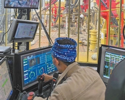 通過參與艾伯特湖區(qū)油田建設(shè),東方宏華還研發(fā)出“一鍵聯(lián)動(dòng)”舉升式排管系統(tǒng),以舉升移運(yùn)、多系統(tǒng)協(xié)同、離線作業(yè)、智能感知、一鍵集控五大技術(shù)為核心,實(shí)現(xiàn)在地面、臺(tái)面和高空三大區(qū)域的自動(dòng)化作業(yè)?!坝辛宋覀冏灾餮邪l(fā)的智能系統(tǒng)加持,操作人員只需點(diǎn)擊屏幕,就可以完成接立柱和鉆井等操作?!睎|方宏華所屬宏華電氣副總經(jīng)理汪虹宇介紹。