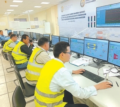 工作人員在錫爾河1500兆瓦燃?xì)饴?lián)合循環(huán)電站集控室監(jiān)控各設(shè)備工作狀態(tài)。李耀德攝