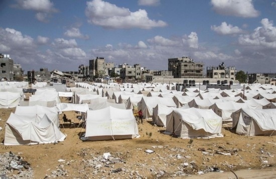 這是9月22日拍攝的加沙地帶北部杰巴利耶地區(qū)的一處容納流離失所民眾的帳篷區(qū)。新華社發(fā)(馬哈茂德·扎基攝)